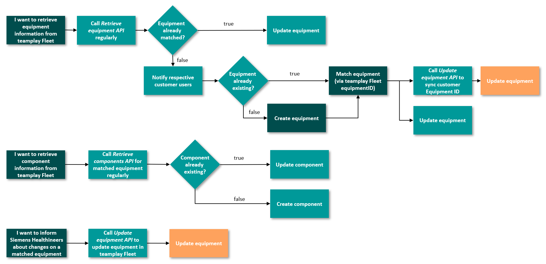 embedding our teamplay Fleet Connect API suite into your application and its supported processes in a way that actors of your application can easily and efficiently initiate sending information to Siemens Healthineers and are also made effectively aware of received information and updates from Siemens Healthineers.