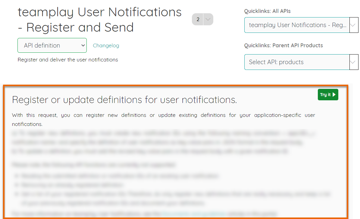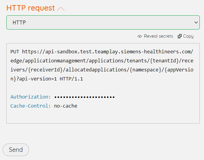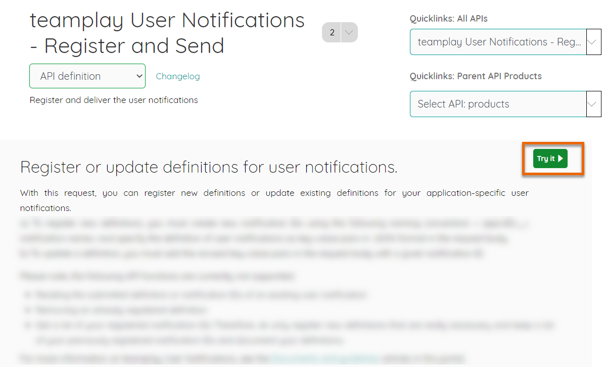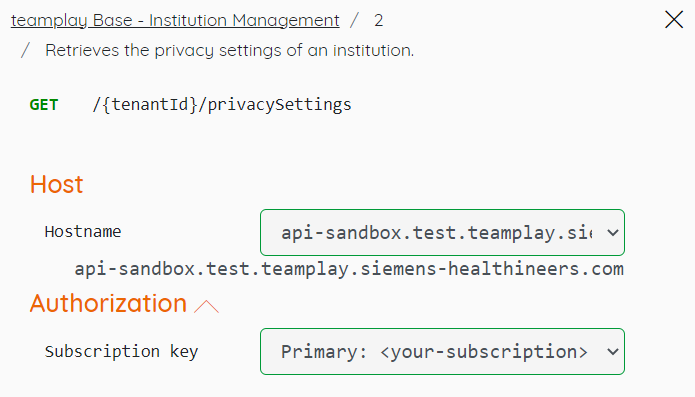 The Try it function provides you a convenient way to debug the integration of APIs and their operations in advance and ensures that your specified request is working correct for the associated teamplay cloud environment.