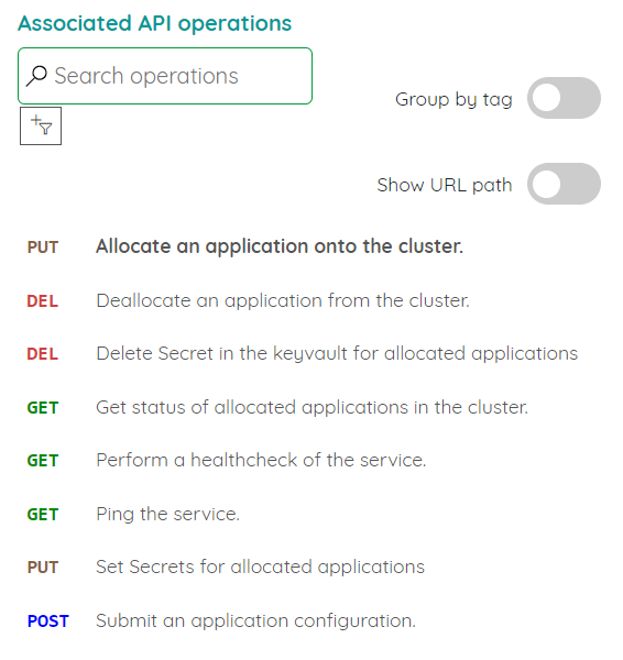 Activating the Show URL path checkbox, sorts and displays the listed API operations by their URL path.
