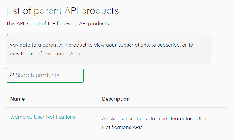 For a few APIs not requiring subscriptions, parent API products are neither displayed on the API details nor on the API products page due to current Microsoft restrictions. APIs not requiring subscriptions are still discoverable through the API gallery and through the Quicklinks: All APIs on the API details page.